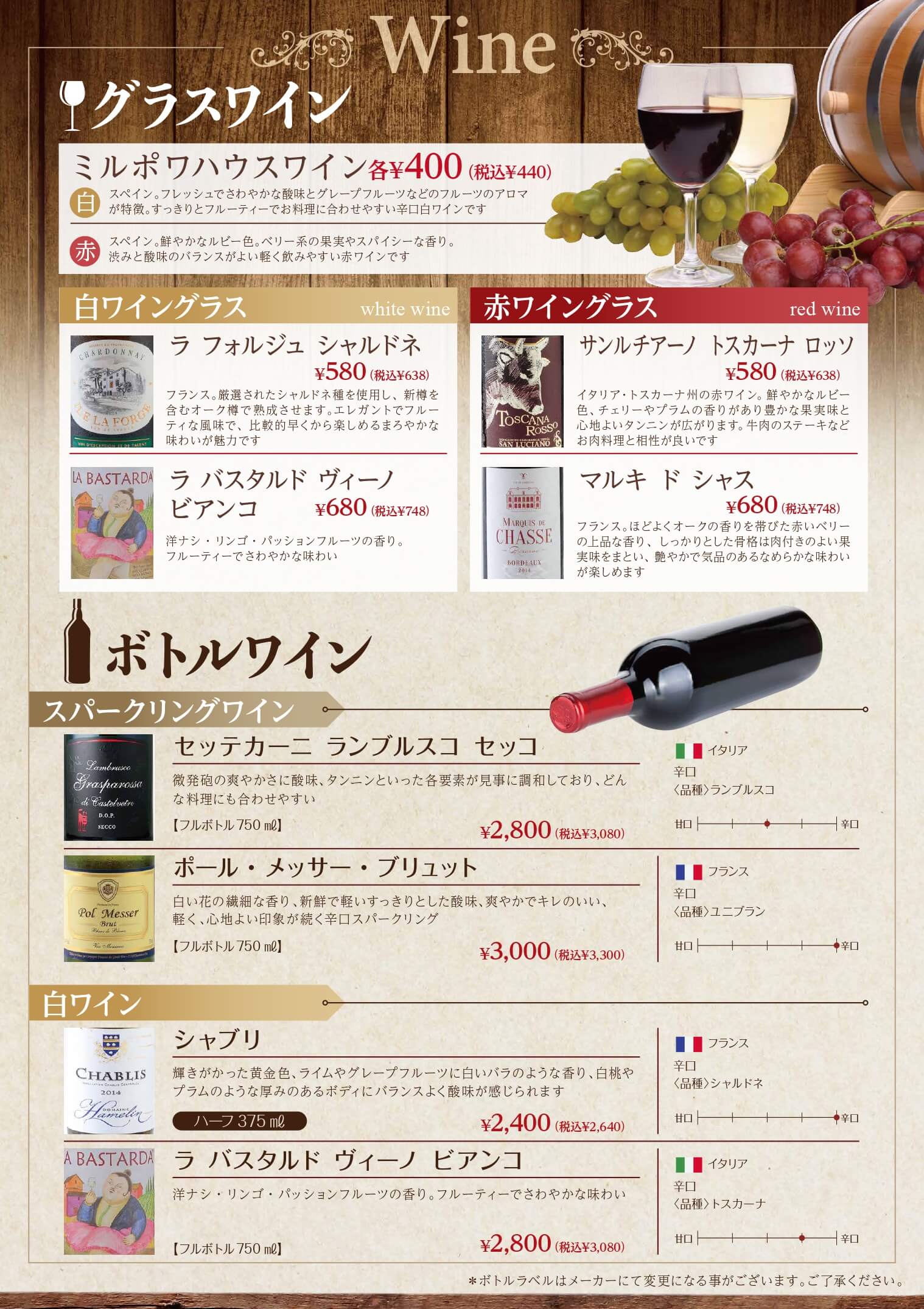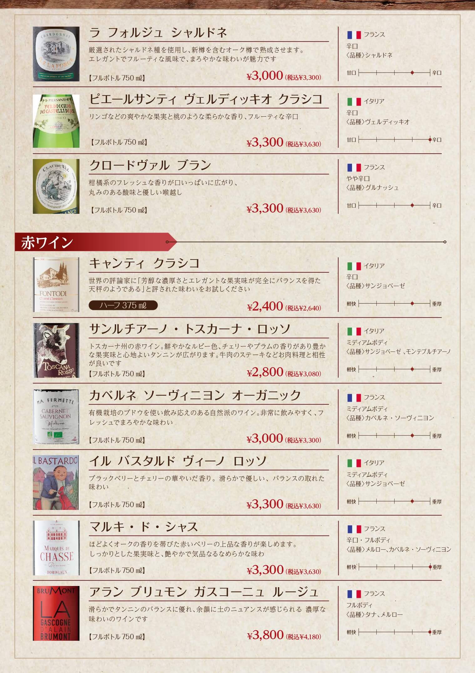 - ●生ビール ●ワイン(赤・白) ●焼酎(麦) ●カクテル〈13種〉 ●ハイボール(プレーン・コーラ・ジンジャー) ●ソフトドリンク〈11種〉
